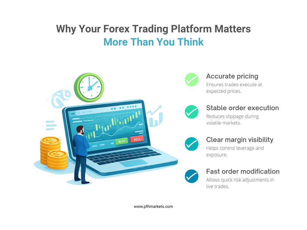 Your Forex Trading Platform influences trading risk in subtle but important ways. A reliable platform delivers accurate pricing, stable order execution, clear margin visibility, and fast order modification, all of which are essential for controlling risk in real time. When platforms suffer from delays, freezes, or price mismatches, even well-planned trades can turn into unexpected losses.